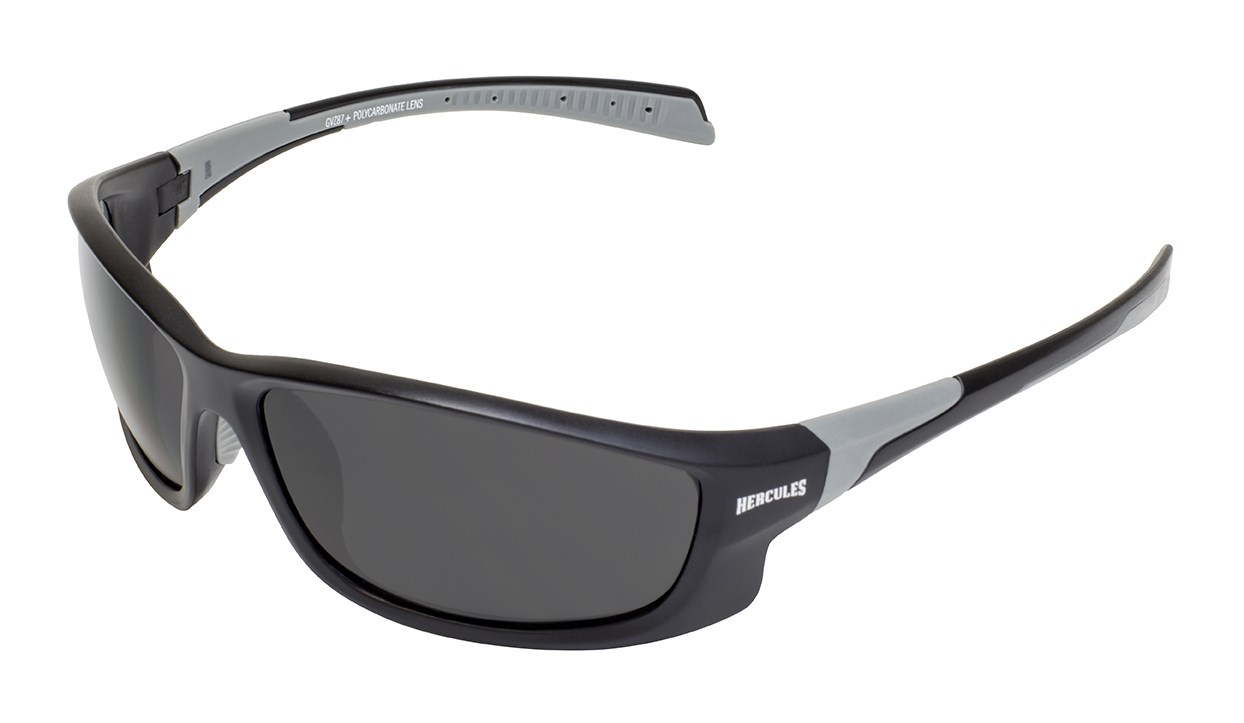 The Hercules 5 safety glasses from Global Vision Eyewear feature a wrap-around aerodynamic design that provides excellent protection from the elements. Smoke-tinted polycarbonate lenses reduce glare for comfortable use in bright outdoor and work environments.