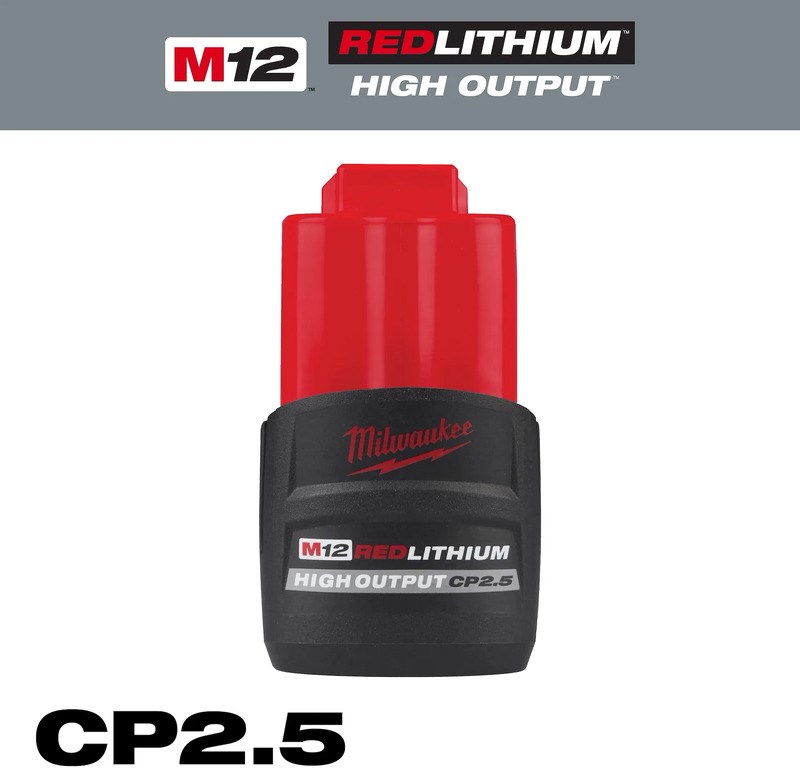 MILWAUKEE M12 REDLITHIUM HIGH OUTPUT CP2.5 BATTERY PACKThe Milwaukee 48-11-2425 M12 REDLITHIUM HIGH OUTPUT CP2.5 Battery Pack delivers the power of a larger battery in a compact, lightweight form. It is compatible with the full Milwaukee M12 cordless tool lineup and features REDLINK Intelligence for overload protection and optimized performance.