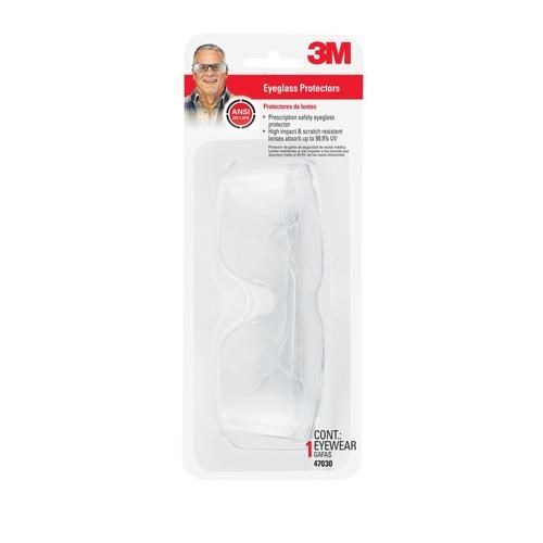 Wraparound lens design fits over most prescription eyeglasses. Built in side shields for front and side protection. Clear frame, clear lens construction for an unobstructed view. Meets ANSI Z87.1-2003, CSA Z94.3 - 2002 standards.