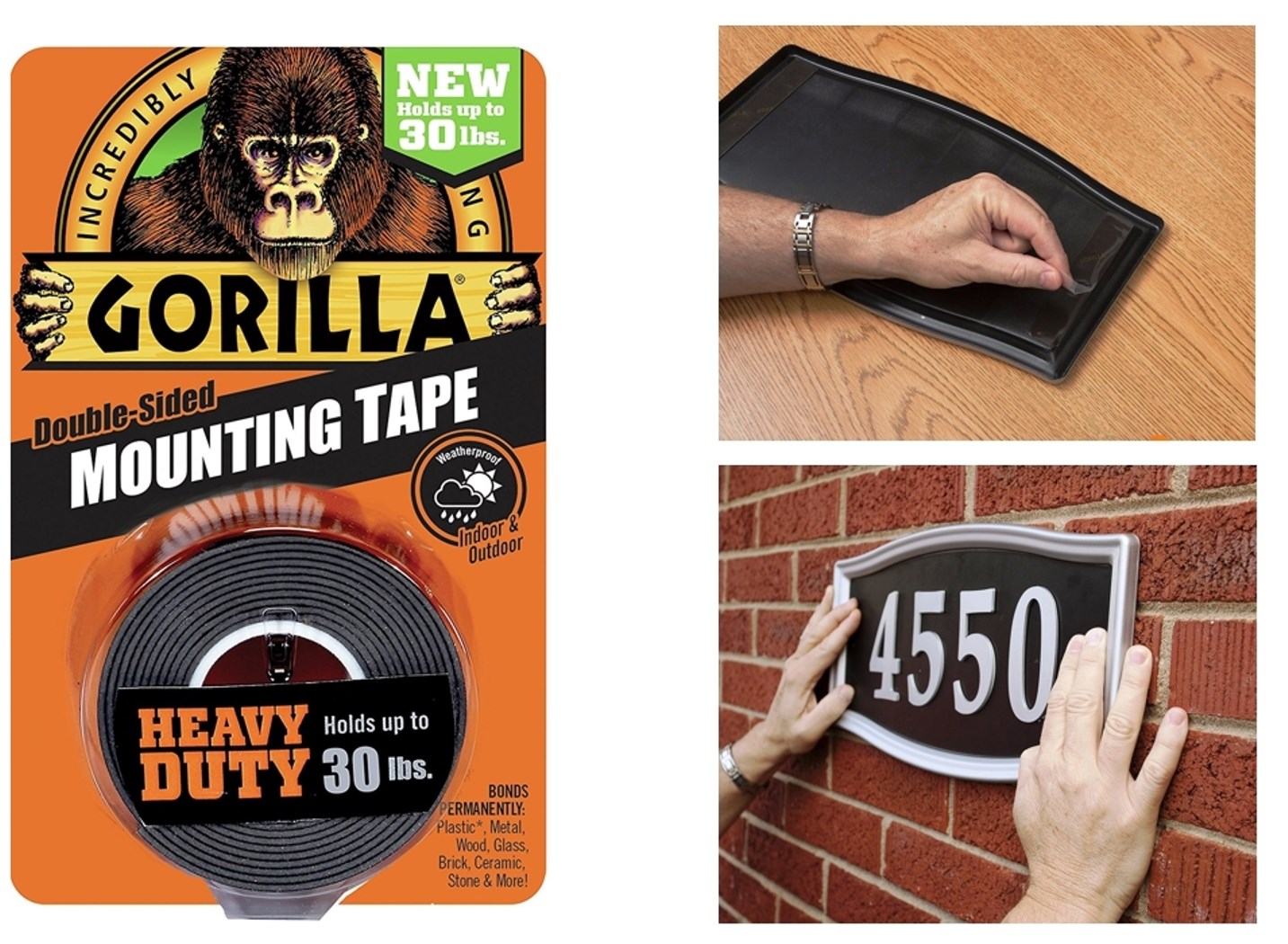 Gorilla H-D mounting tape sticks to smooth and rough surfaces and holds up to 30 pounds
