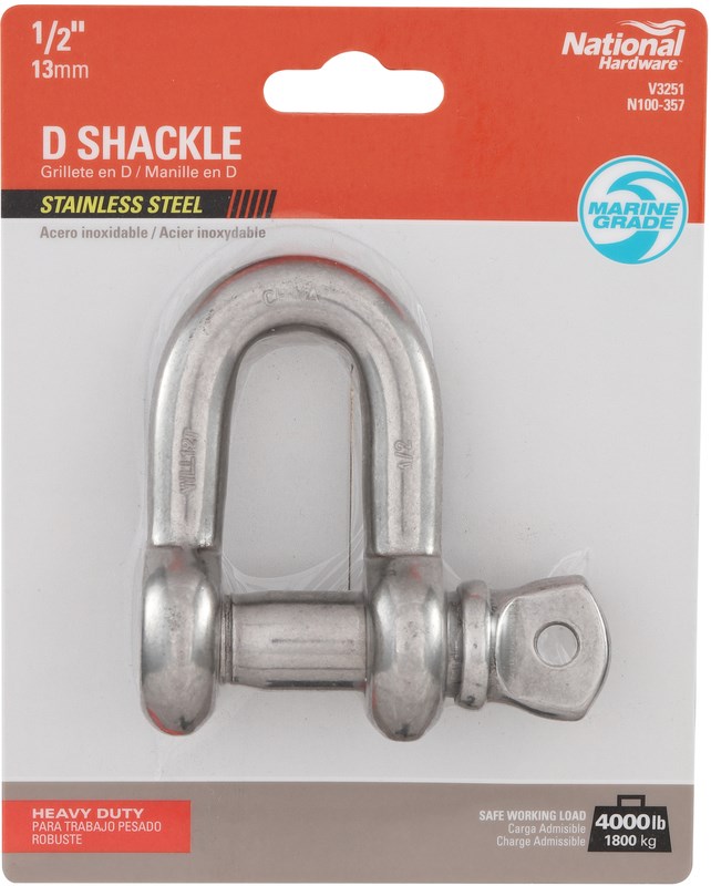 NATIONAL HARDWARE N100-357 - 1/2" STAINLESS STEEL D SHACKLE