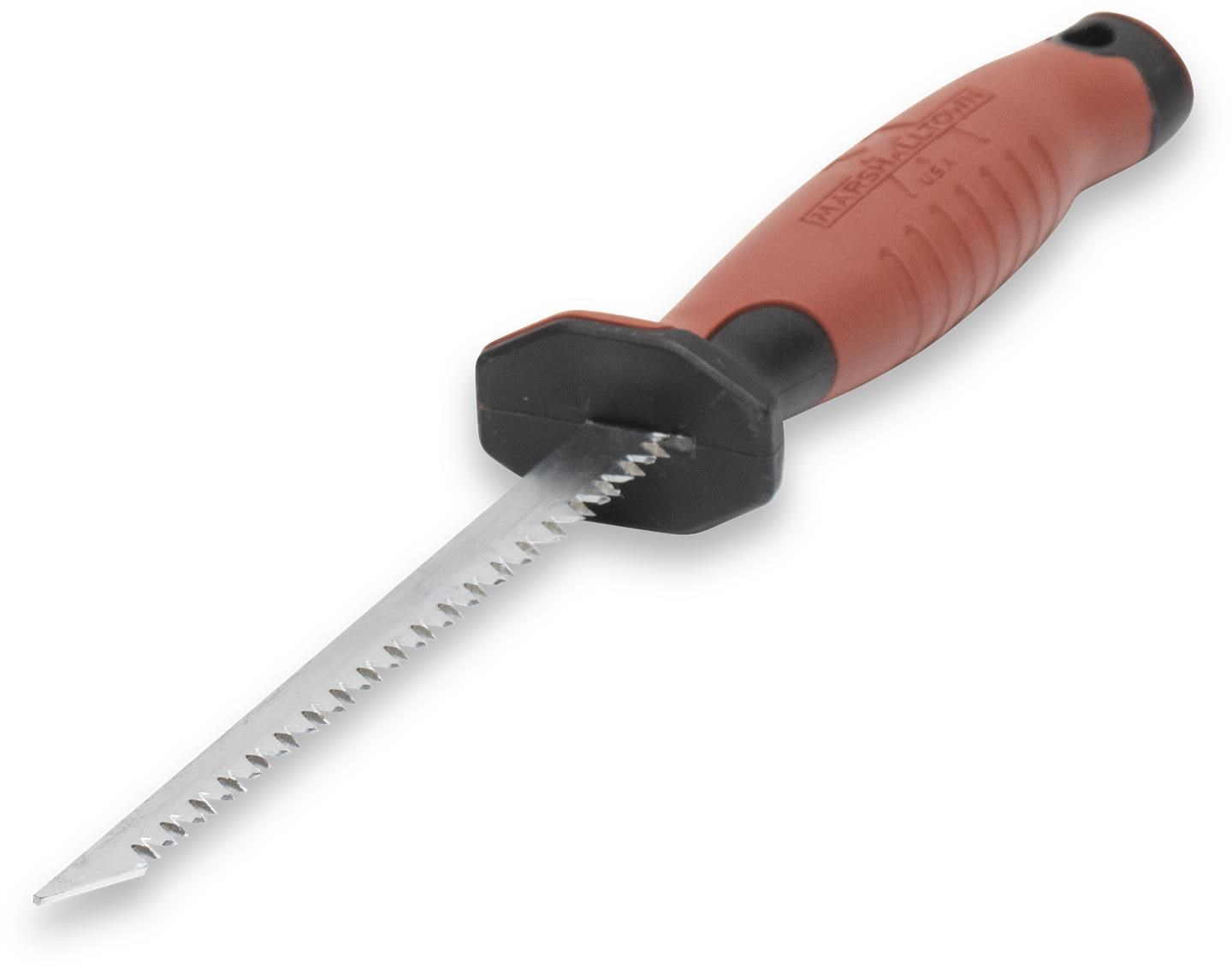 MARSHALLTOWN ROCKWARRIOR DRYWALL UTILITY SAWThe Marshalltown RockWarrior utility saw is optimized for cutting drywall and other non-metallic materials quickly and accurately. The tempered high carbon steel blade features a beveled point that pierces drywall cleanly without needing a pilot hole, saving time and effort on plunge cuts. The bi-directional design cuts on both push and pull strokes for faster material removal, and the improved ergonomic soft grip handle reduces hand fatigue during extended cutting.