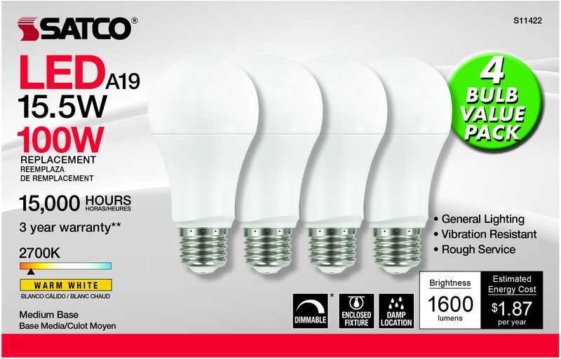 LED 4 Pack 15.5W Dim Bulb
