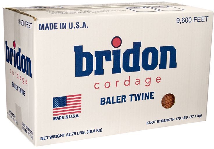 Plastic Baler Twine provides the optimal durability and strength. 9600' Bridon plastic baler twine has a 170# knot strength and is used for small square bales. This product shipped in a carton with two spools totaling 9600'.