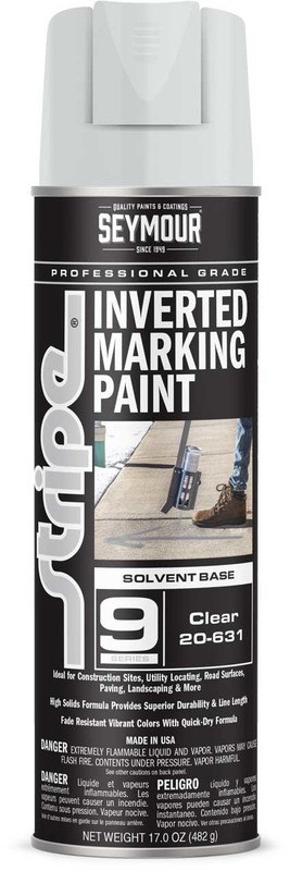 SEYMOUR STRIPE SOLVENT-BASED MARKING PAINT - CLEAR, 20 OZSeymour Stripe solvent-based inverted marking paint in clear provides a transparent protective coat for marking applications. The non-clogging spray tip delivers consistent, reliable coverage for construction and utility marking needs.