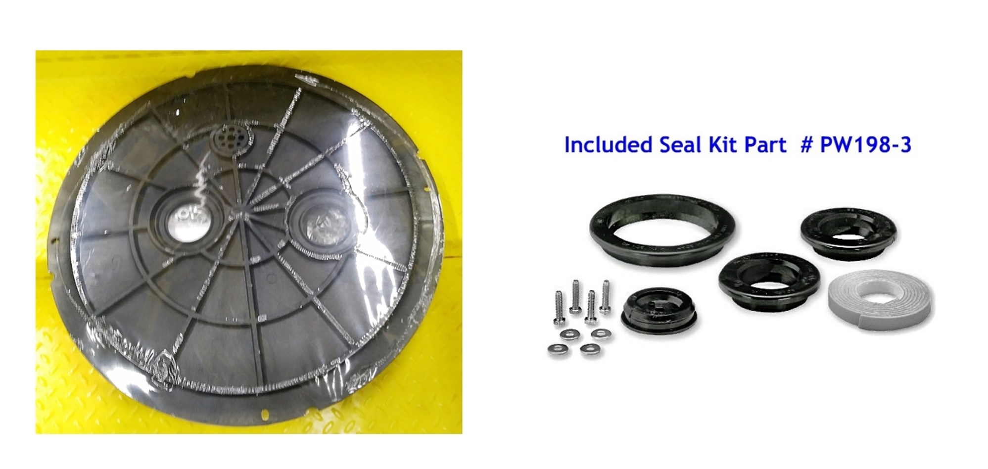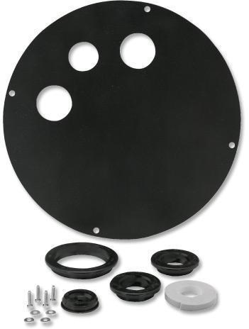The lid kit consists of discharge, vent, inlet and cord grommets. It