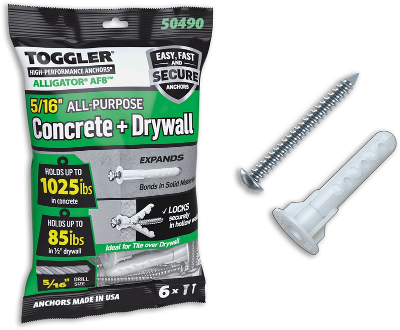 TOGGLER ALLIGATOR AF8 ALL-PURPOSE FLANGED ANCHORS - 6 PACKVersatile wall anchors that hold securely in both solid and hollow walls. The Alligator AF8 works in concrete, brick, stone, drywall, and hollow block. Includes 6 flanged anchors with #12 x 1-3/4" screws.