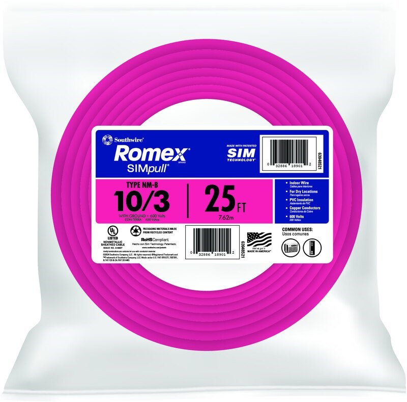 ROMEX 10/3G 25' GROUND N-M WIRE