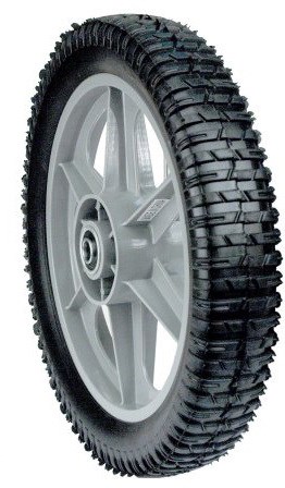 Replacement spoked tire wheel for Poulan mower