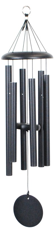 The Corinthian Bell 29-inch Wind Chime is visually and acoustically exceptional, made to look unlike any chime on the market. Centrally suspended, heavy-walled aluminum tubes and a high-density striker give this chime its outstanding tone and resonance. The tubes are powder-coated in the same color as the top and sail, giving a complete, finished look to the chime, as well as the resilience to withstand all-season use. Tubes are suspended on durable synthetic nylon cords.