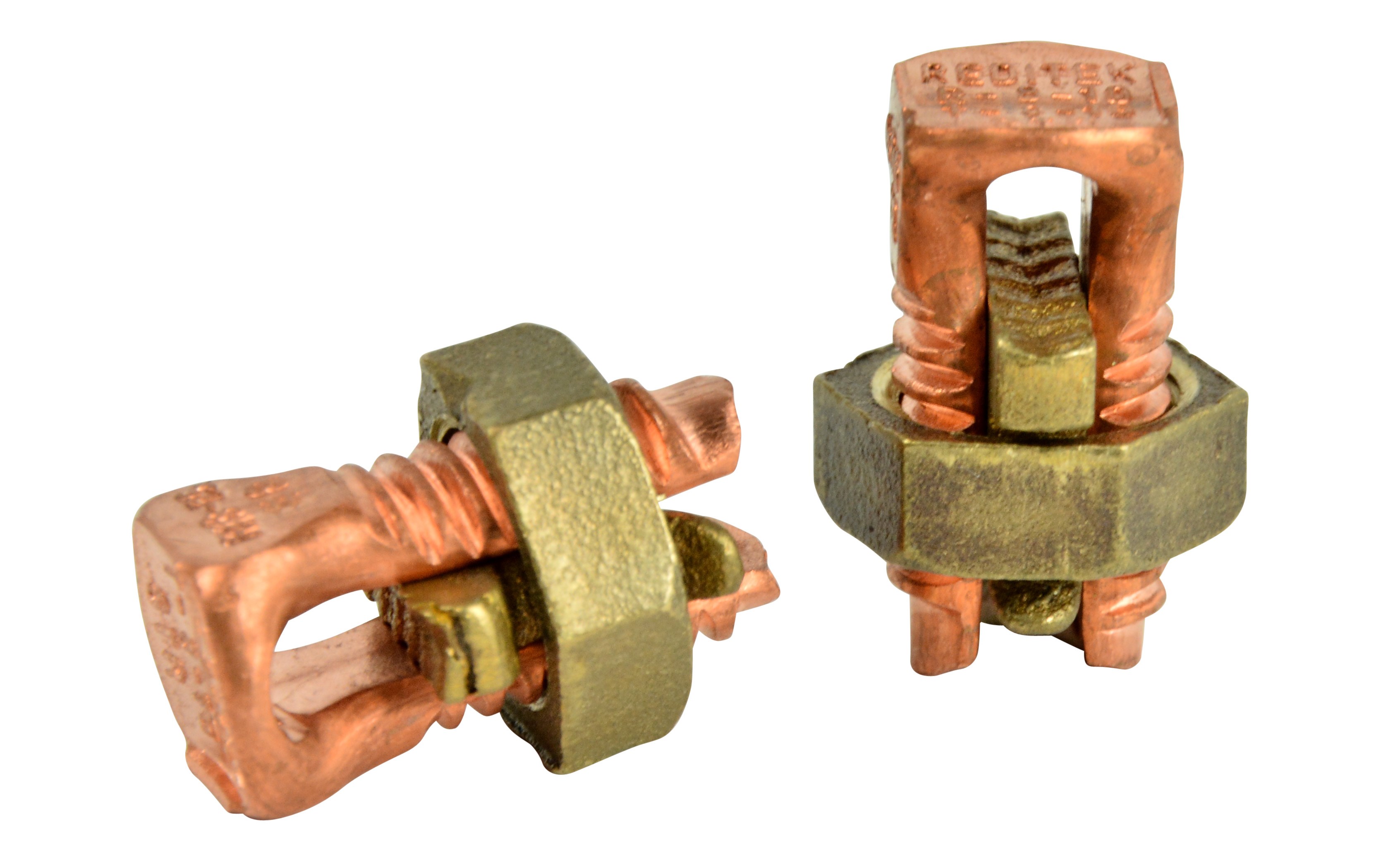 COPPER SPLIT BOLT CONNECTOR - #8 AWGGardner Bender copper alloy split bolt connector for secure, low-resistance splicing and tapping of copper and copperweld conductors. Compact size handles branch circuit and general wiring connections. Precision-tooled threads allow maximum torque with a standard wrench - no crimp tool needed.
