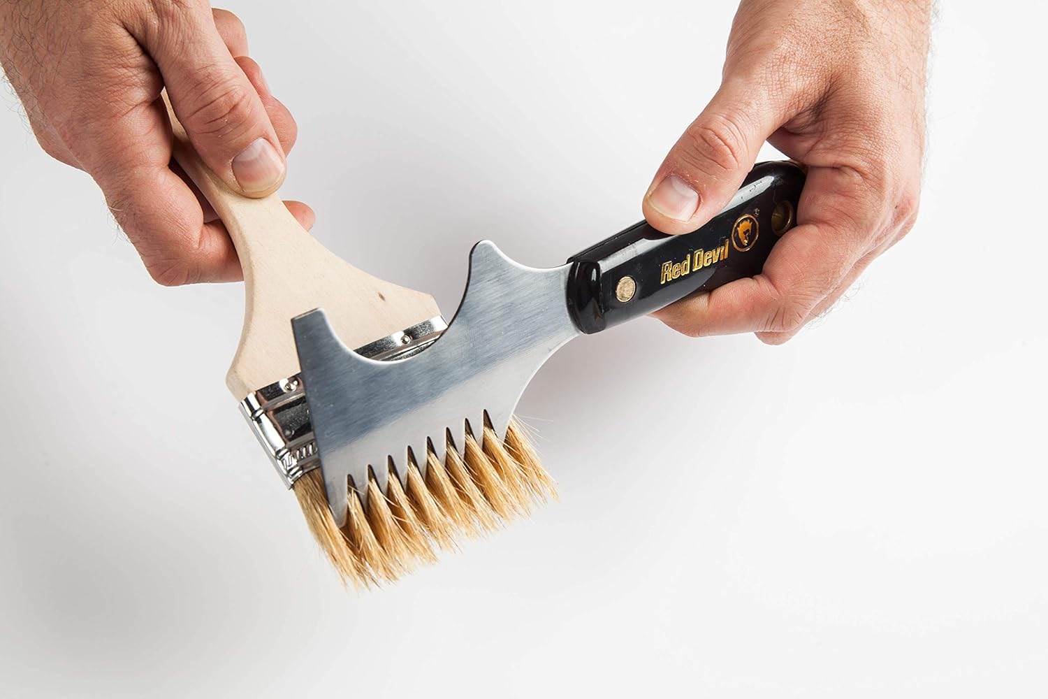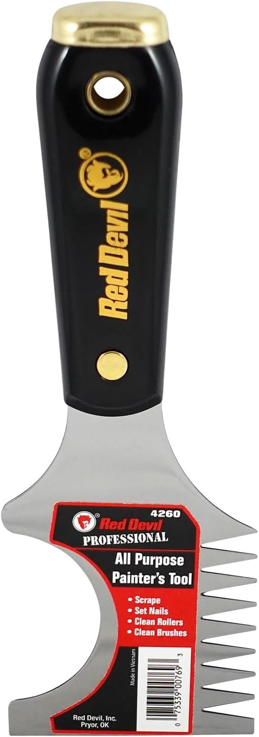 RED DEVIL BRUSH & ROLLER CLEANERThe Red Devil Brush & Roller Cleaner is a professional-quality tool designed to quickly clean paint from brushes and rollers. The high-carbon, precision-ground steel blade extends through the handle for maximum strength, while the lacquered finish prevents rust.