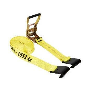 ERICKSON 2" x 27' RATCHET STRAP WITH FLAT HOOKSHeavy-duty ratchet tie-down with flat hooks designed for flush attachment points. Delivers 10,000 lb break strength and 3,300 lb working load limit. The flat hook design sits low-profile on trailer edges and stake pockets for a secure connection.