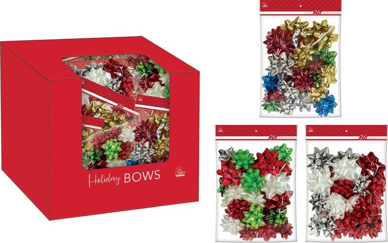 - 36 bows per bag in assorted sizes