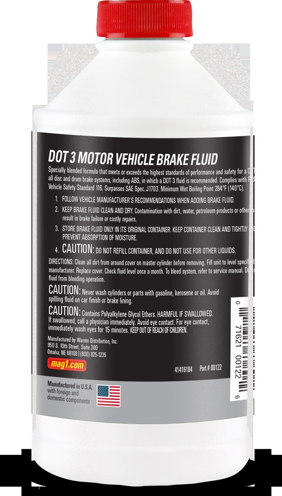 MAG 1 DOT 3 BRAKE FLUID - QTHigh-performance DOT 3 brake fluid formulated to exceed the highest standards of performance and safety. Compatible with all disc and drum brake systems, including ABS, where a DOT 3 fluid is recommended.