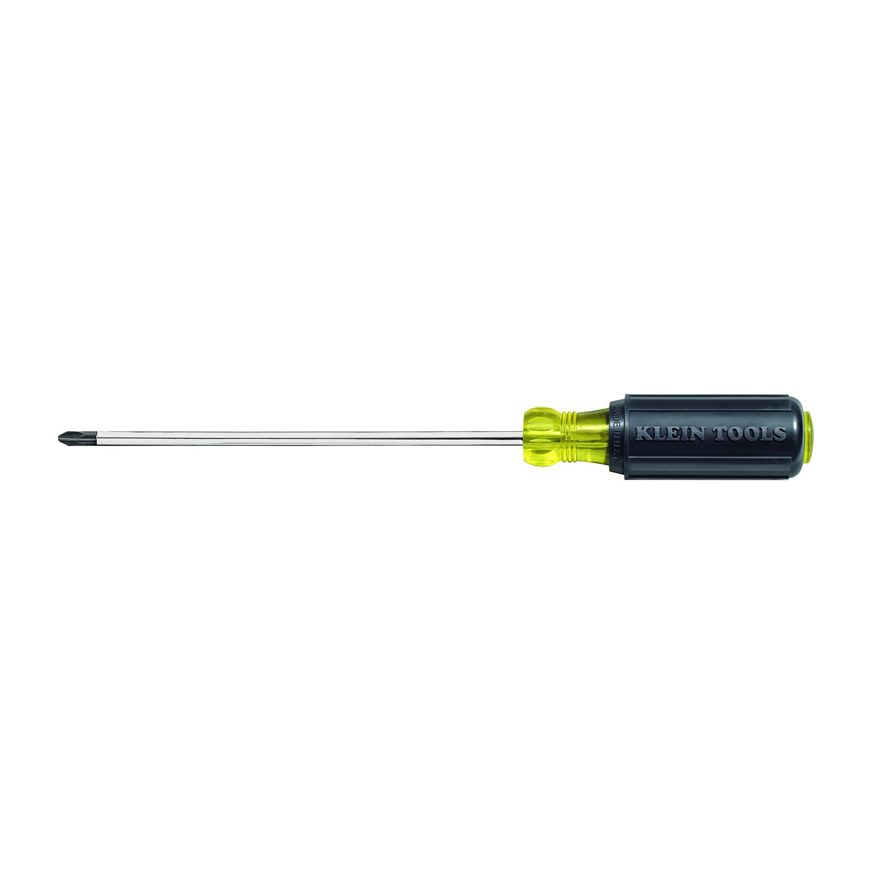 KLEIN TOOLS #2 PHILLIPS SCREWDRIVERThe Klein Tools 603-7 features a durable black oxide tip that is precision-forged and ground with square edges to fit screw openings securely. The 7" round shank provides extended reach for deep-set fasteners. Internal flanges anchor the blade firmly in the handle, preventing twisting under torque.