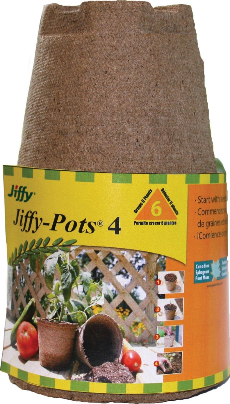 JIFFY 4" BIODEGRADABLE PEAT POTS - 6 PACKJiffy peat pots make transplanting seedlings and young plants simple and stress-free. When plants are ready for the garden, transplant the pot directly into the ground -- roots grow right through the biodegradable peat walls, eliminating transplant shock and reducing planting time. OMRI listed and approved for use in certified organic gardening programs.