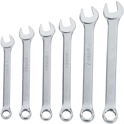 STANLEY 6-PIECE SAE COMBINATION WRENCH SETProfessional-quality combination wrench set for standard SAE fasteners. Chrome vanadium steel construction provides excellent torque, strength, and durability for demanding applications.