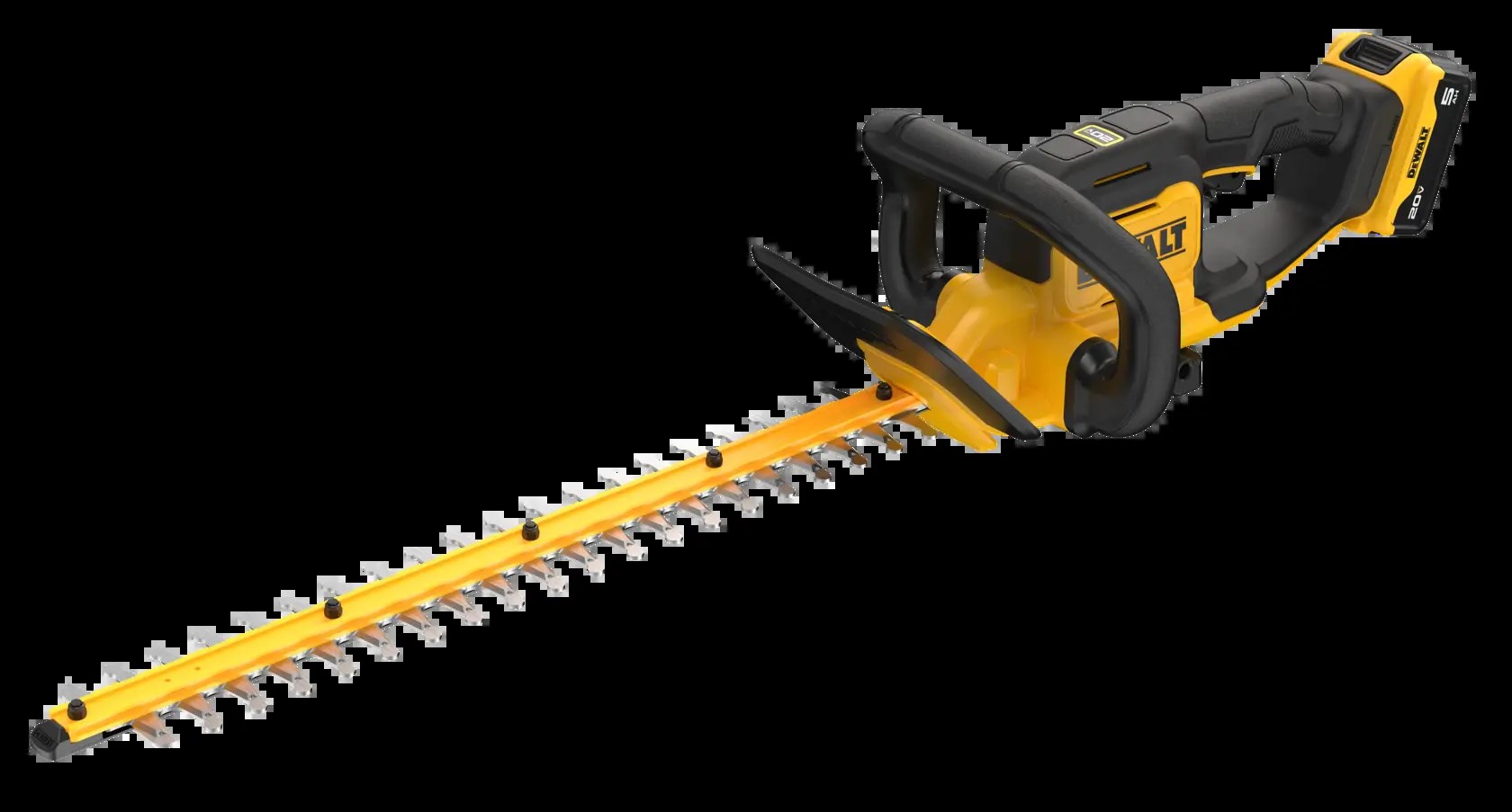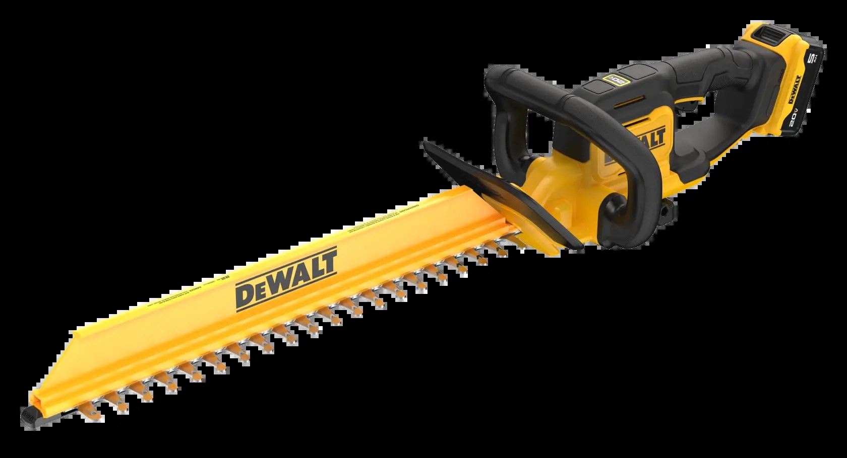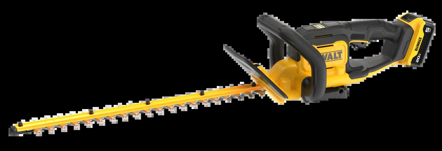 DEWALT 20V MAX 22 IN. CORDLESS HEDGE TRIMMER KITTackle tough branches and overgrowth with the DEWALT 20V MAX hedge trimmer. A high-output motor handles branches up to 3/4 in. thick and delivers up to 78 minutes of runtime per charge. Laser-cut, hooked-tooth blades make clean, fast cuts, and a friction clutch helps protect the transmission if the blade strikes an obstacle.