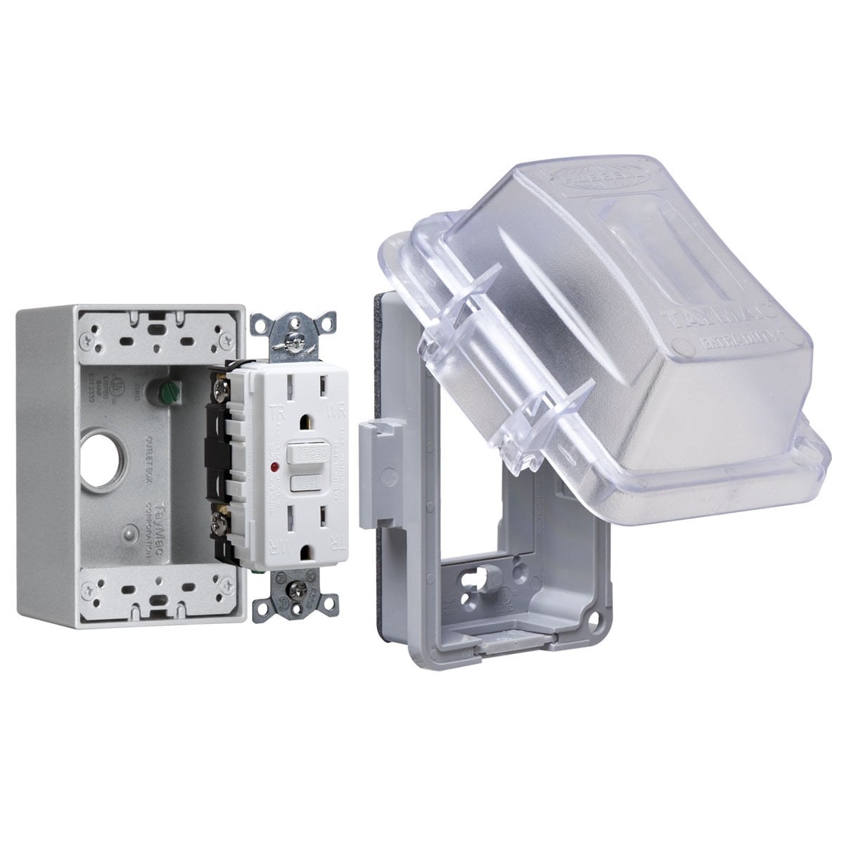Metal WP box & weather/tamper resistant 15-amp self-test white GFCI receptacle